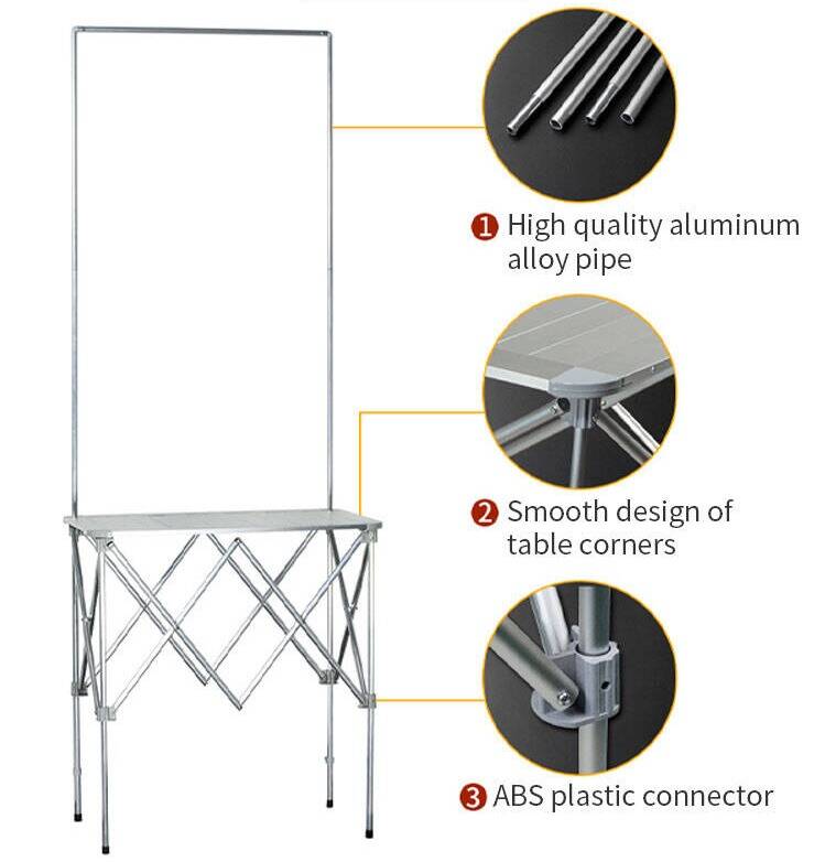 Tabletop dimensions: 40x70cm / 45x80cm / 50x90cm / Metal promotional stand