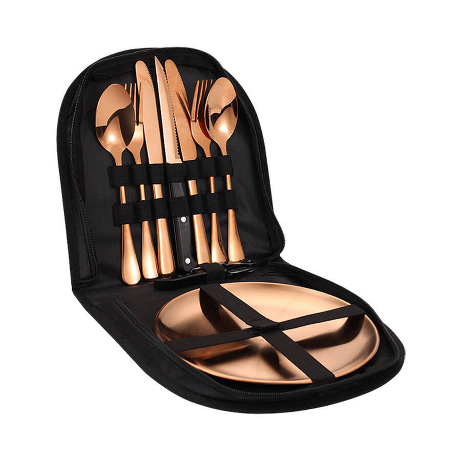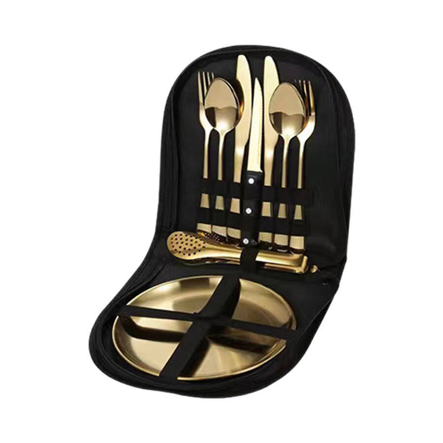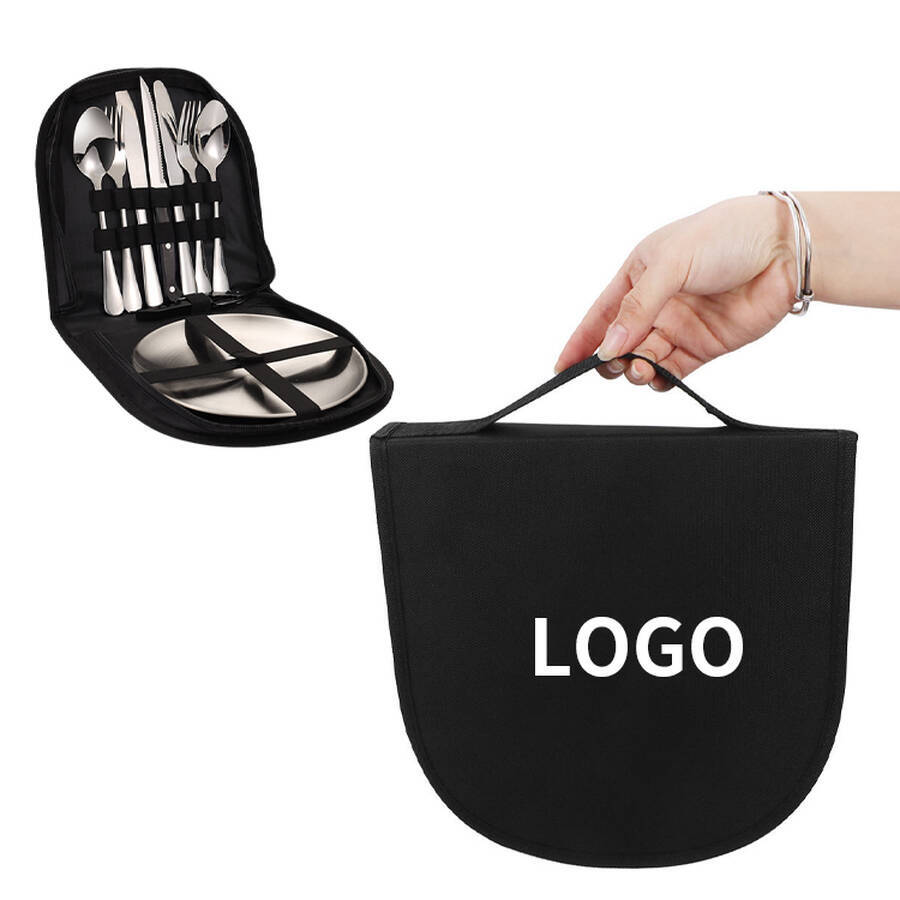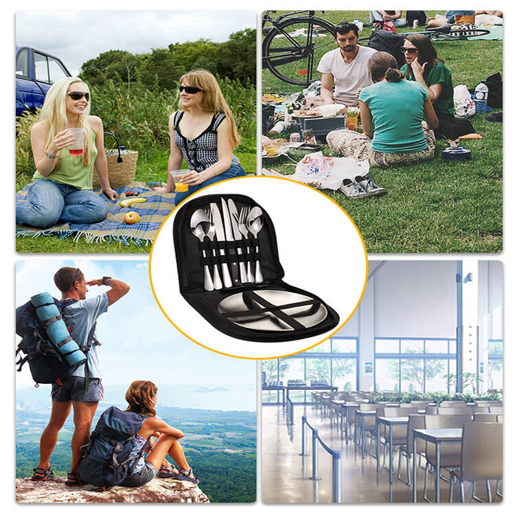 Professional outdoor BBQ tool set featuring stainless steel utensils and compact carrying case. Designed for camping, picnics, and backyard grilling with complete cooking accessories.