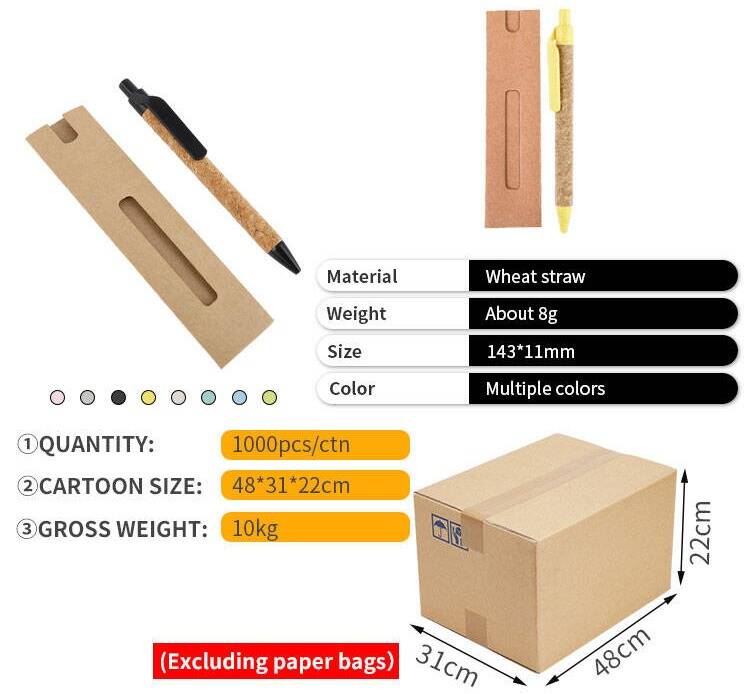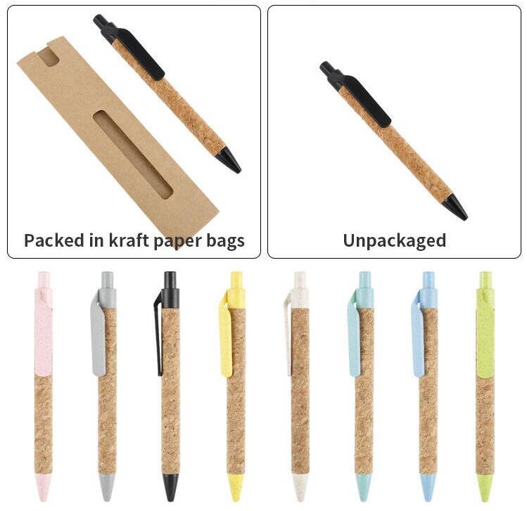 Wheat Straw Pens come in two options: a minimalist single-pen pack for convenient personal use anytime; and an eco-friendly kraft paper bag packaging version, perfect as a gift or event souvenir.