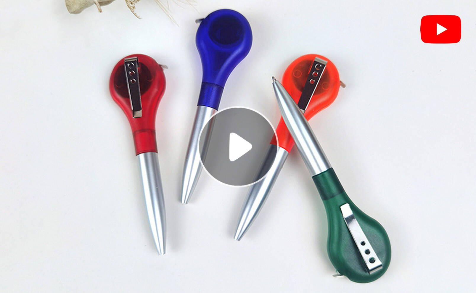 Retractable Steel Ruler Ballpoint Pen with Tape Measure