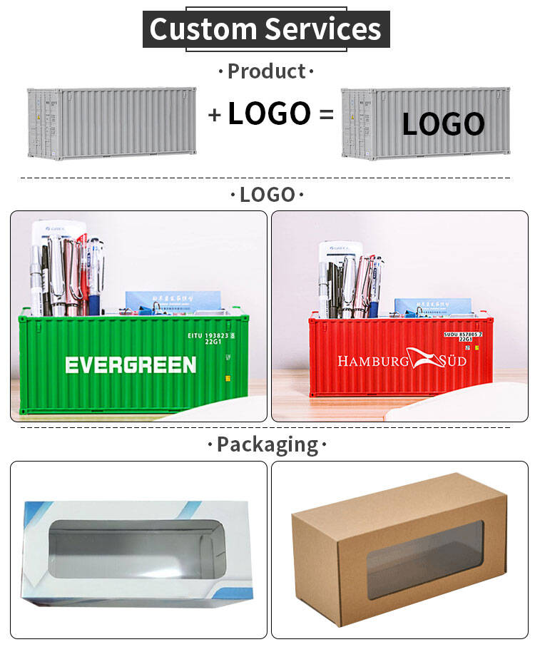 This is a creatively designed desktop pen holder shaped like a shipping container. Made from durable ABS plastic, it offers a large capacity for organizing pens, stationery, and business cards. Its unique thematic design makes it a perfect functional gift and promotional item, especially for companies in the shipping, logistics, and international trade sectors.