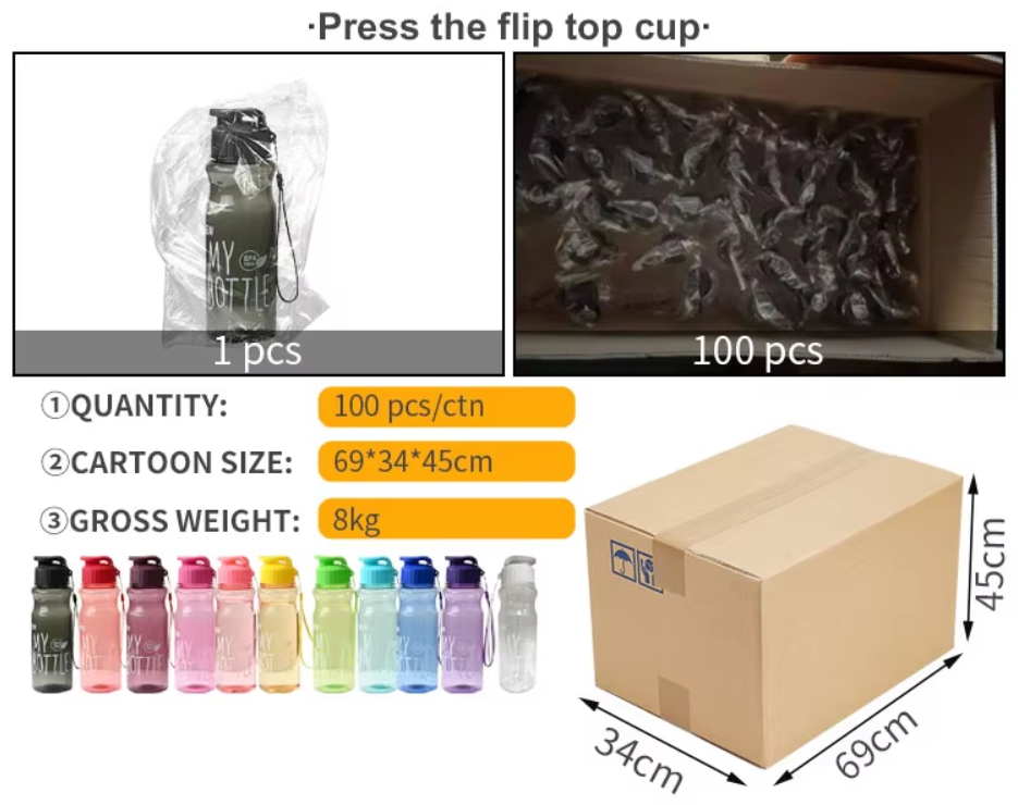 Press the lid with your fingertip, and the flip-top lid springs open instantly, positioning the drinking spout for immediate use. Release it, and it seals tightly without a single drip. Crafted from durable food-grade PET plastic, the cup is lightweight and impact-resistant, withstanding the bumps of cycling or the pressure of a backpack. The wide-mouth design facilitates easy ice loading and cleaning. Its intuitive one-touch operation allows for single-handed, hands-free use while running or cycling without diverting your gaze. From mountain hikes to gym workouts, its reliable seal and swift response integrate hydration seamlessly into your athletic rhythm—ensuring thirst never interrupts a single heart-pounding moment.