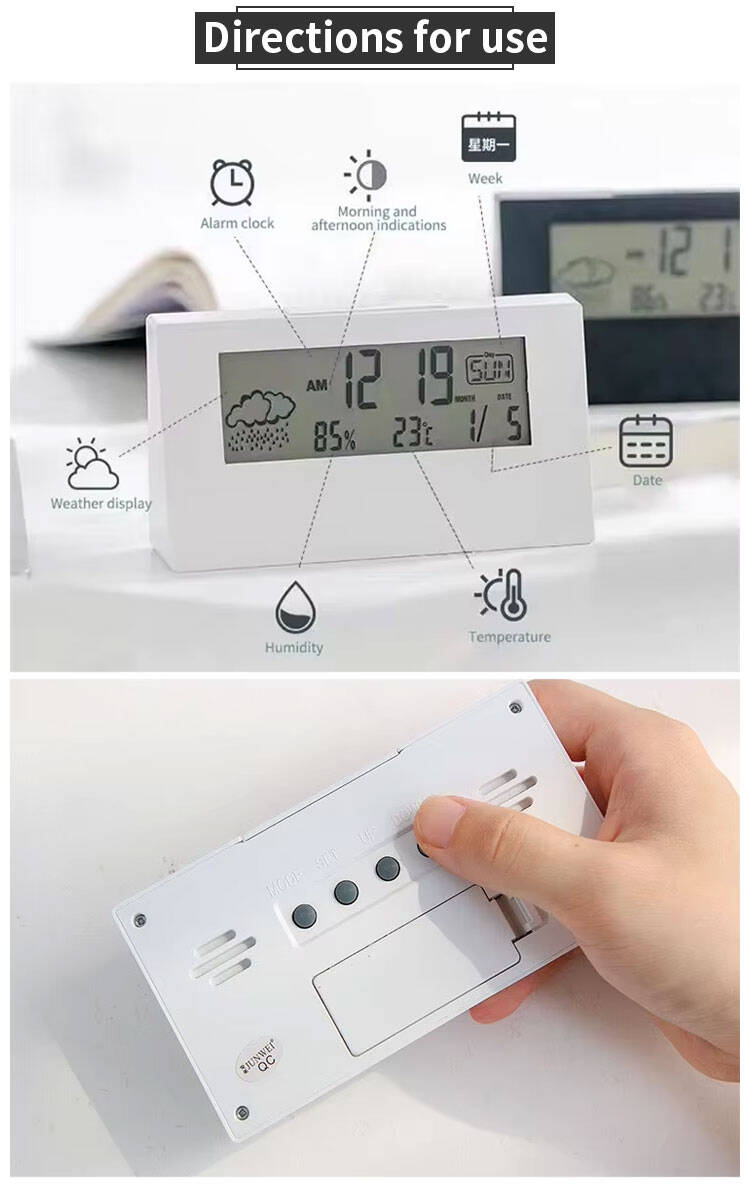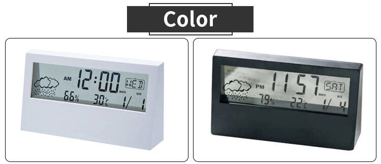Introducing our Multi-Function Digital Desk Clock, a sleek and practical accessory designed for modern living and working spaces. This rectangular LCD clock goes beyond simple timekeeping by displaying real-time indoor temperature and humidity, alongside date and alarm functions.