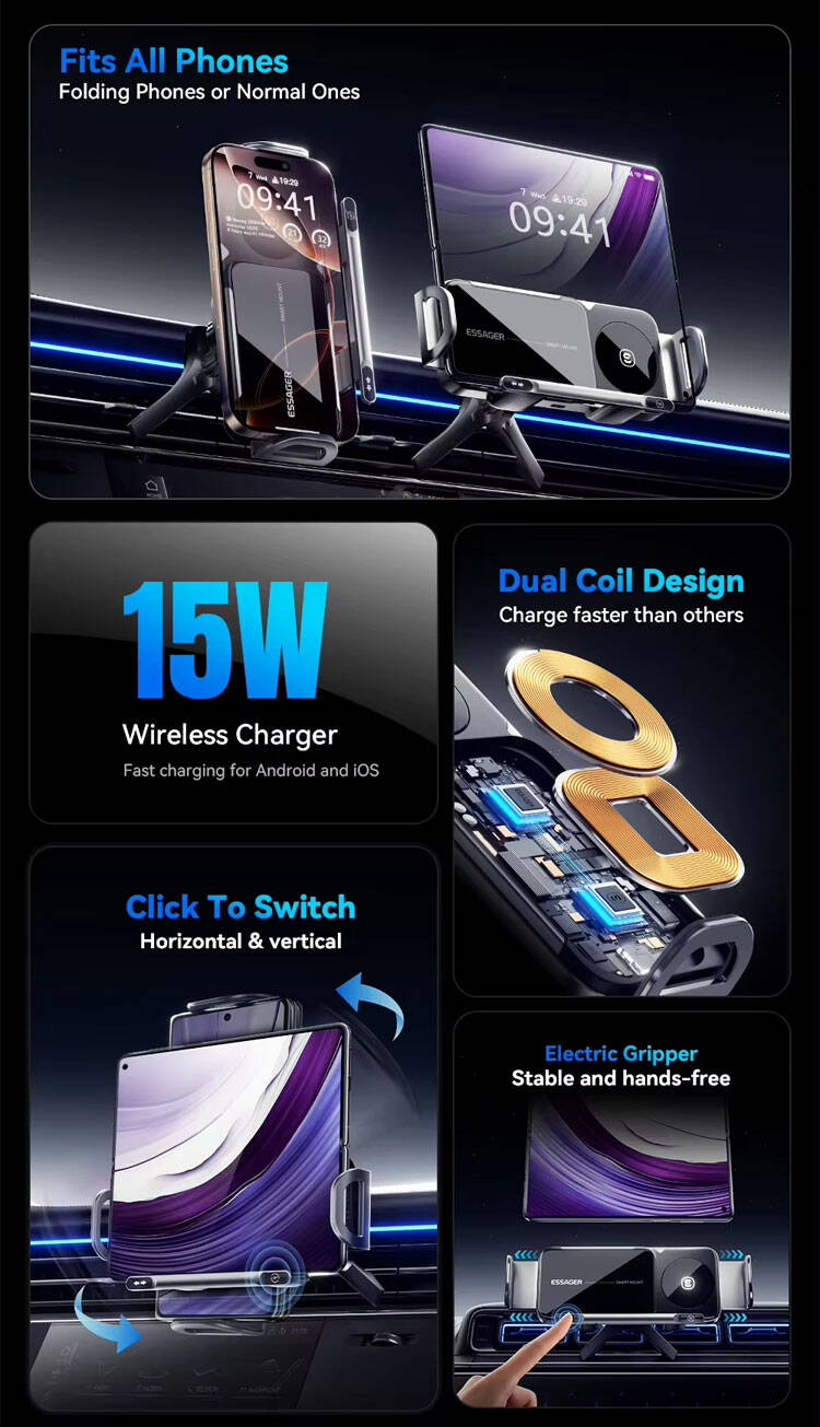Power: Common car‑mount wireless chargers range from 10W to 20W. 15W is a popular balance of speed and heat control.