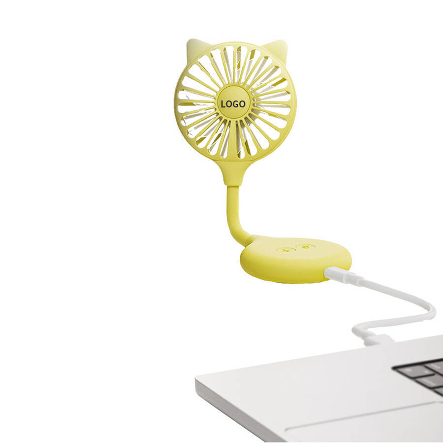 A: The fan has a built-in rechargeable battery that is charged via the included USB cable. Specific battery capacity and runtime can be confirmed with the supplier for accurate details.