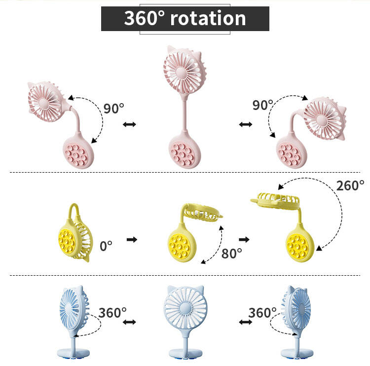 Introducing the Mini Smart Fan, a rechargeable, portable personal cooling device. Designed for versatility, it features a unique suction cup base for hands-free use and a compact, modern design. It is an ideal accessory for staying cool at home, in the office, or outdoors.