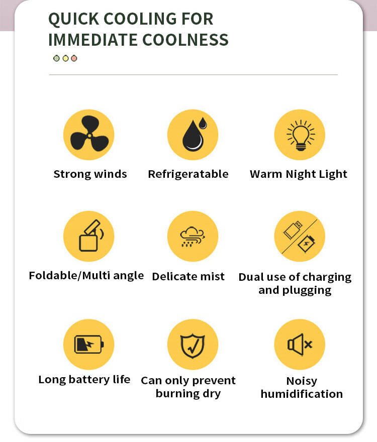 Key Features: Mist spray function (Hydration & Humidification), foldable design, USB powered.