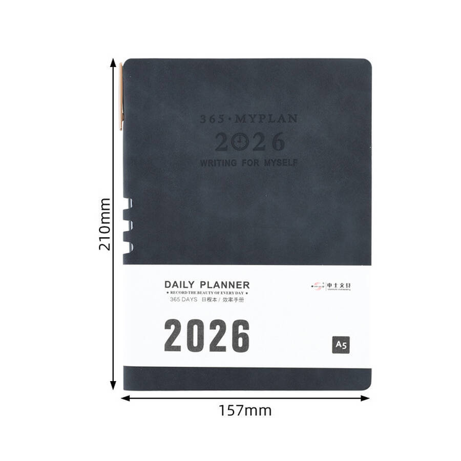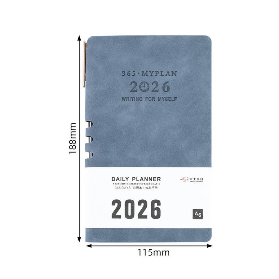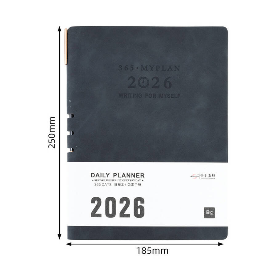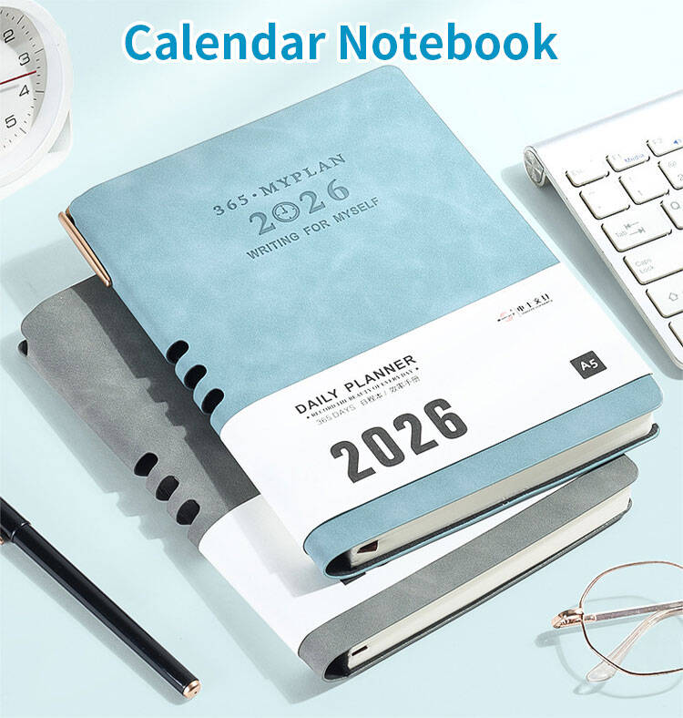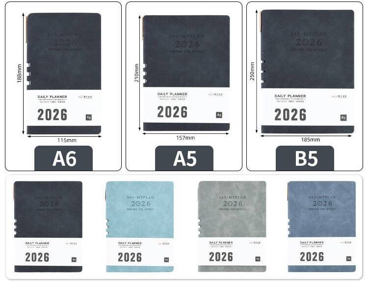 The 2026 Calendar Notebook offers three classic sizes: the portable A6, the versatile A5, and the spacious B5 for expansive writing. Available in a palette of deep black, steady gray, elegant navy, and refreshing sky blue, it caters to diverse settings and personal styles. There's always one that will perfectly complement your 2026 journey.