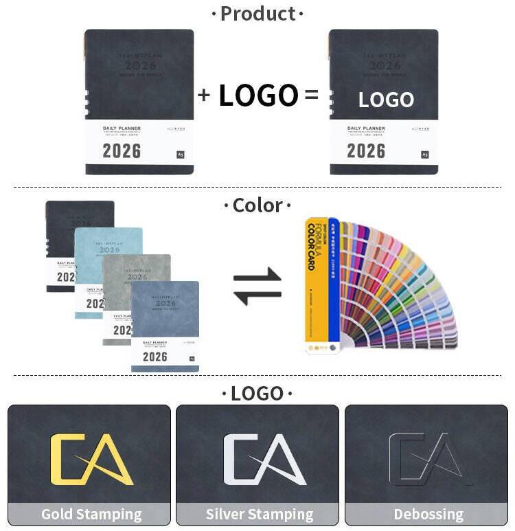 Calendar notebooks offer full support for deep customization. Whether you're creating a unified visual identity for corporate teams or preparing a personalized gift engraved with a name for someone special, we can fulfill your vision. From cover materials and logo printing to interior layouts, every aspect of your customization request will be meticulously realized, ensuring each notebook carries unique meaning and value.