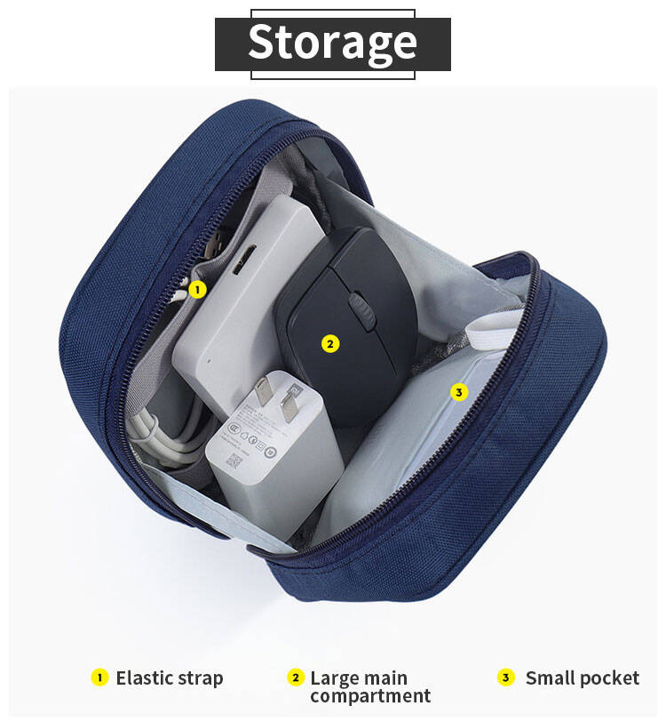 A: Given its compact size (13x16x6cm), it is ideal for standard phone chargers, cables, power banks, and similar accessories. A very large laptop power brick might be too bulky. It's best for organizing multiple smaller items.