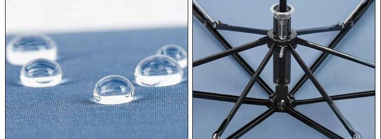 Its one‑piece carbon‑fiber frame provides wind resistance beyond steel, while staying exceptionally light. The canopy features a nano‑scale water‑repellent coating — rain beads and rolls off immediately, while also blocking UV rays in sun.