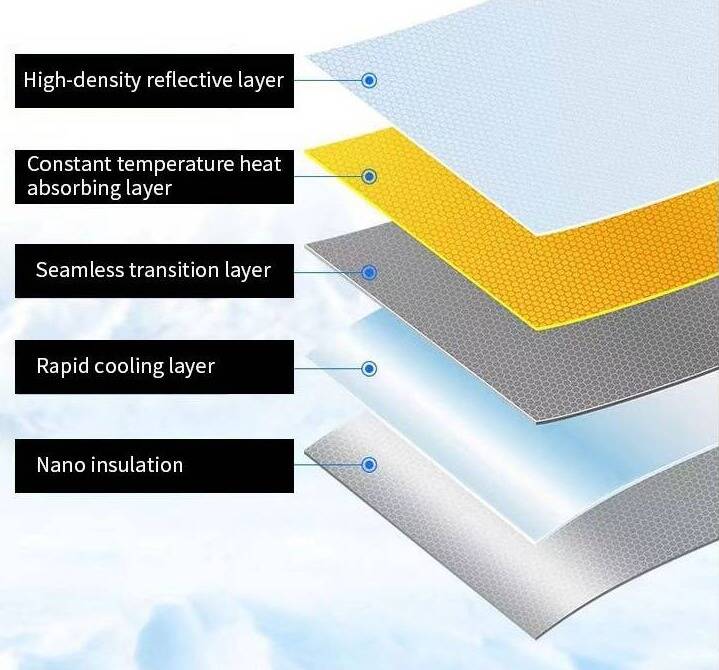 How it works: A reflective outer layer bounces sunlight; the inner insulation layer (e.g., bubble‑aluminum) blocks heat conduction.