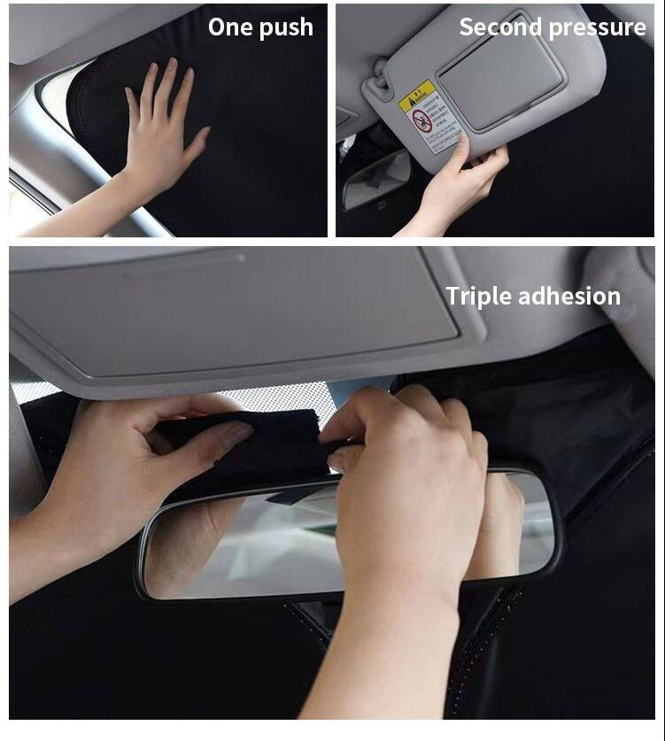 Universal shades (umbrella/folding type): Often use suction cups or just lay in place — prone to sliding, poor seal.