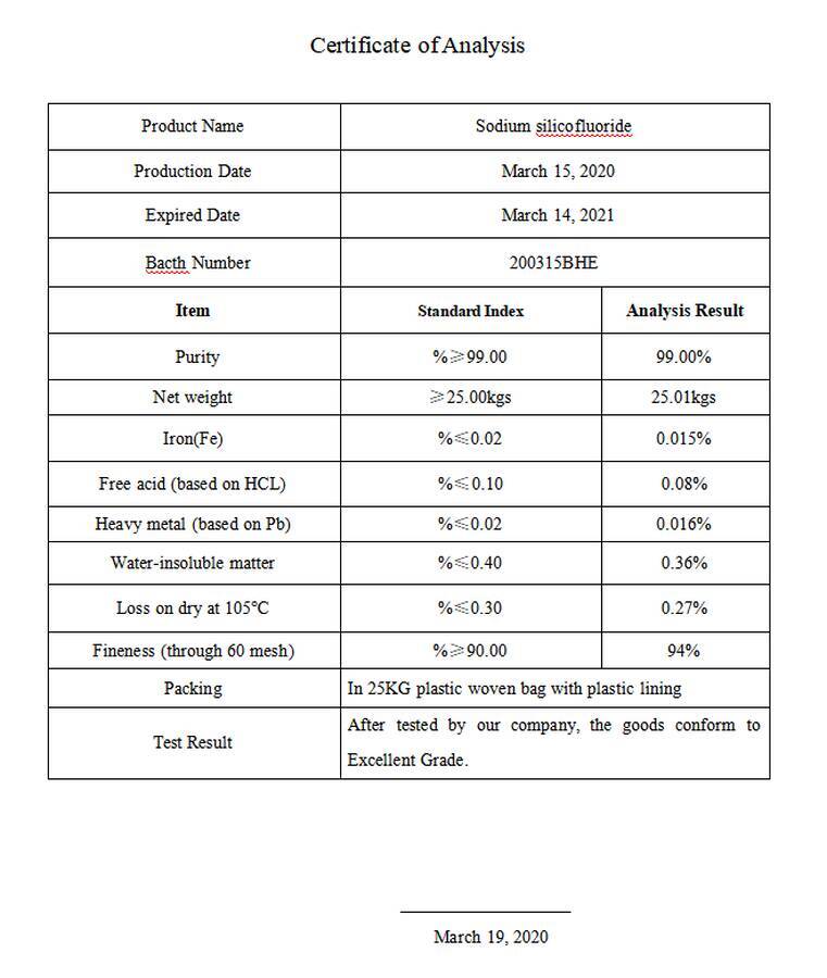 | Sodium Fluorosilicate (Na₂SiF₆) ω/% | 99.0 |