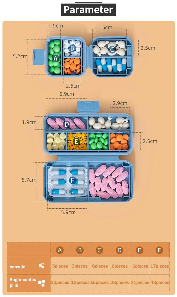 This new multi-compartment pill case is a compact and practical daily organizer. Made from PP plastic and silicone seals, it features a multi-chamber design to neatly separate pills, vitamins, or small items for different days or times.