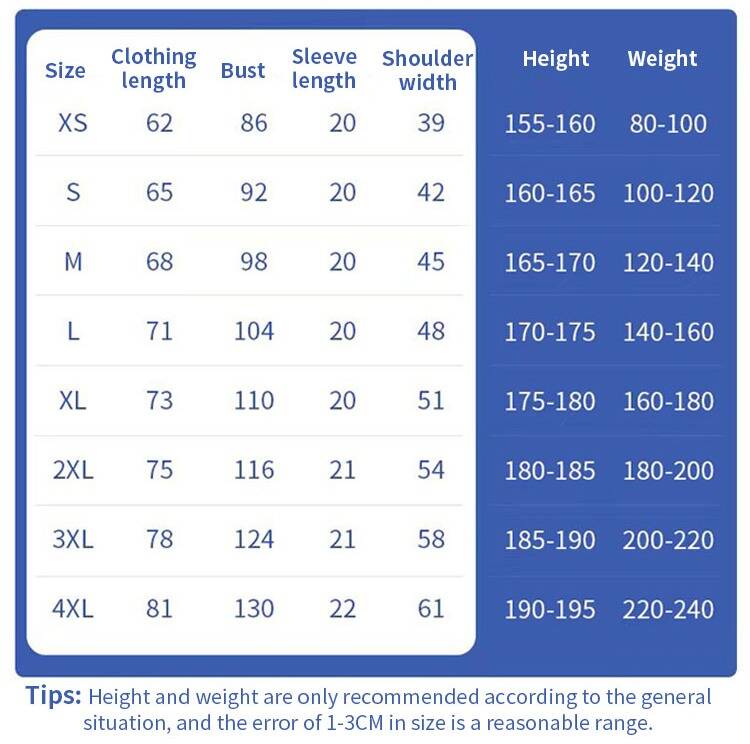 The size comparison chart is shown below. You may select the appropriate size based on your actual measurements.