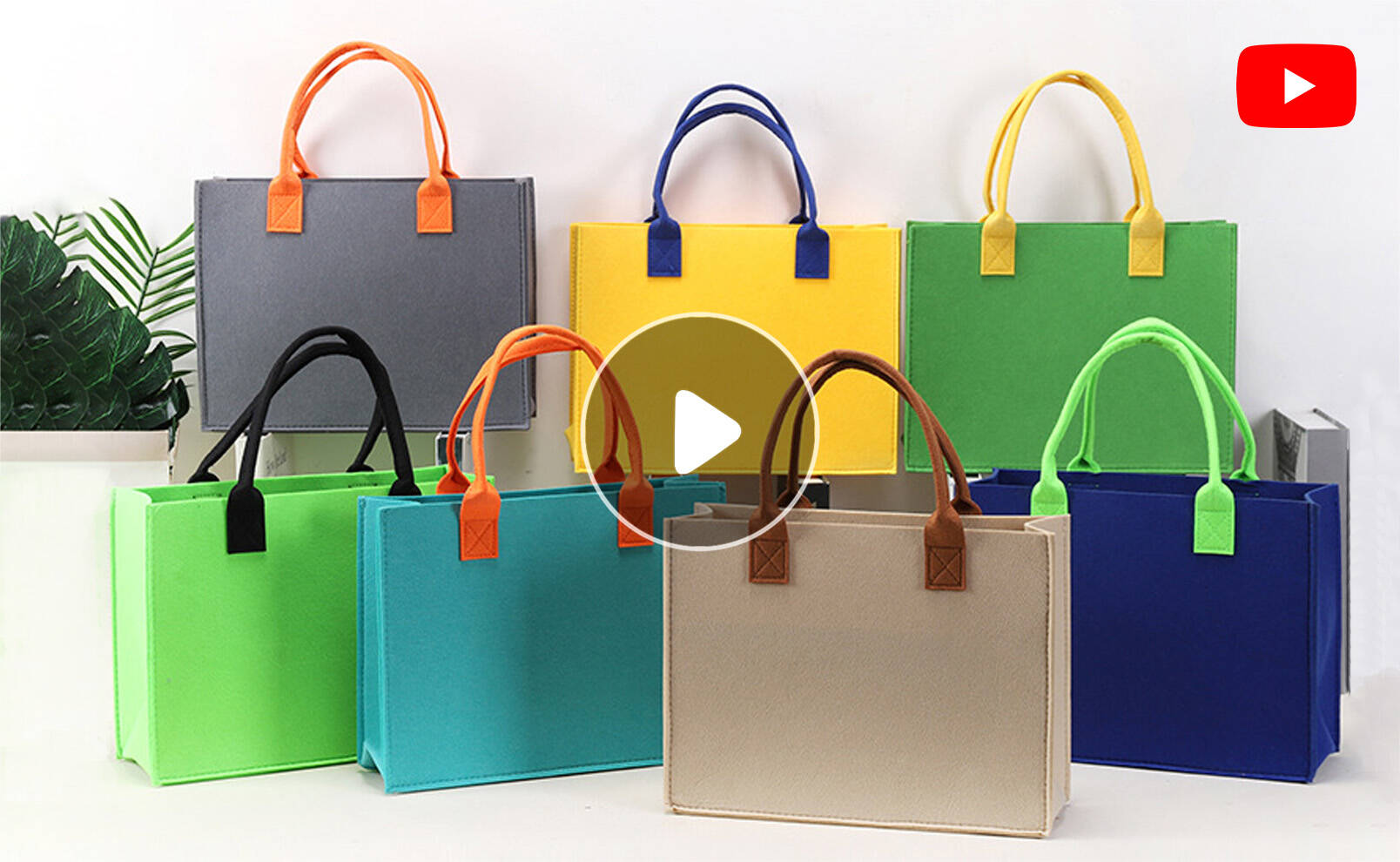 A: The bag body is made of durable, eco-friendly felt, and the handles are made of comfortable and stylish PU leather.