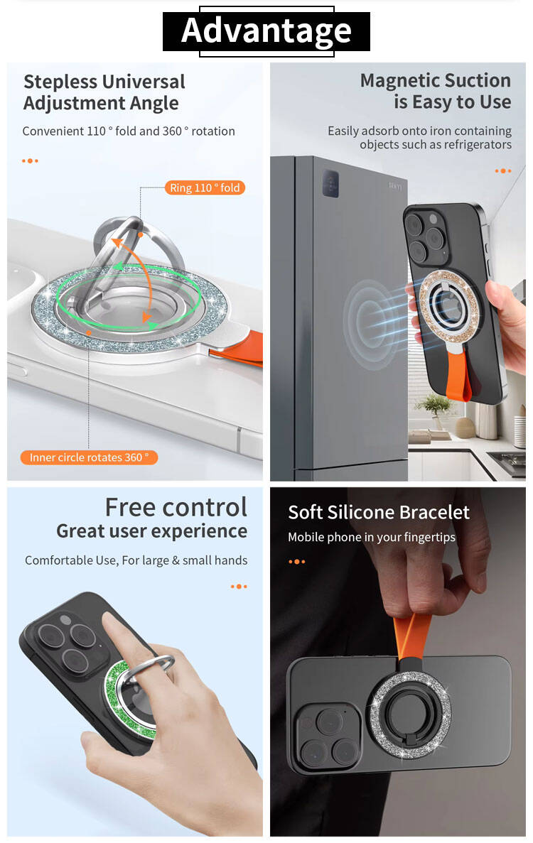 Combining a secure grip, a foldable stand, and magnetic functionality, this accessory is the perfect companion for smartphones. Whether you're watching videos, taking photos, or video calling, it provides comfort and convenience at home, in the office, or on the go. Its sleek carbon fiber and silicone design, available in multiple colors, makes it an excellent promotional item for tech events, corporate giveaways, and retail stores.
