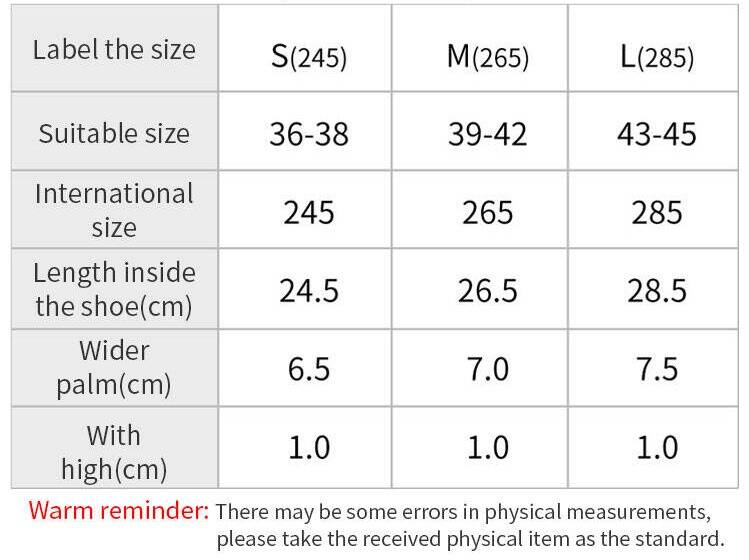 Unfolded: Size of a standard slipper — US sizes 36‑45.