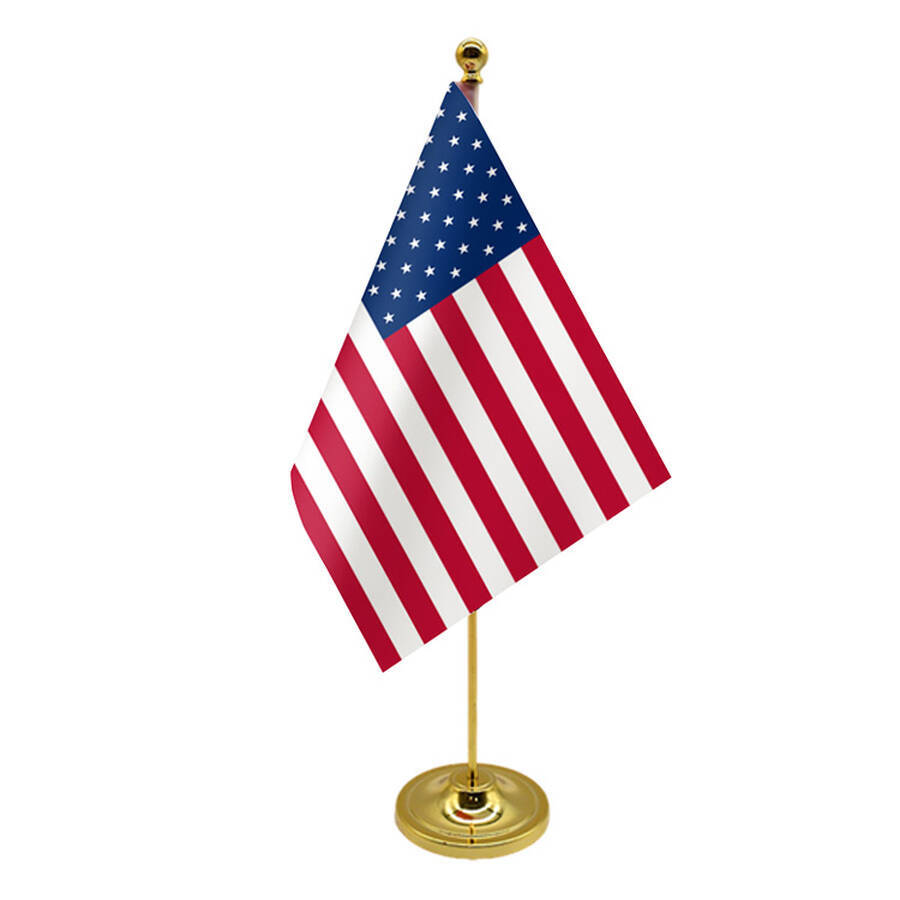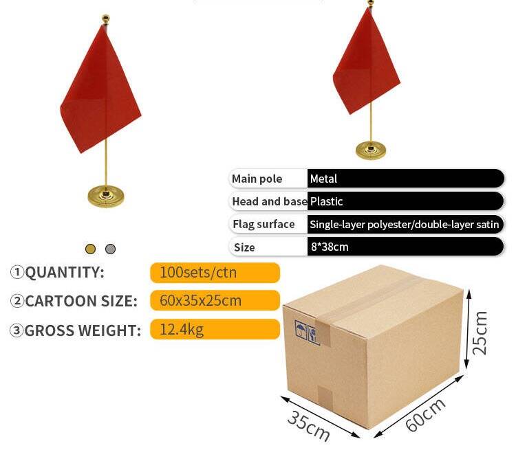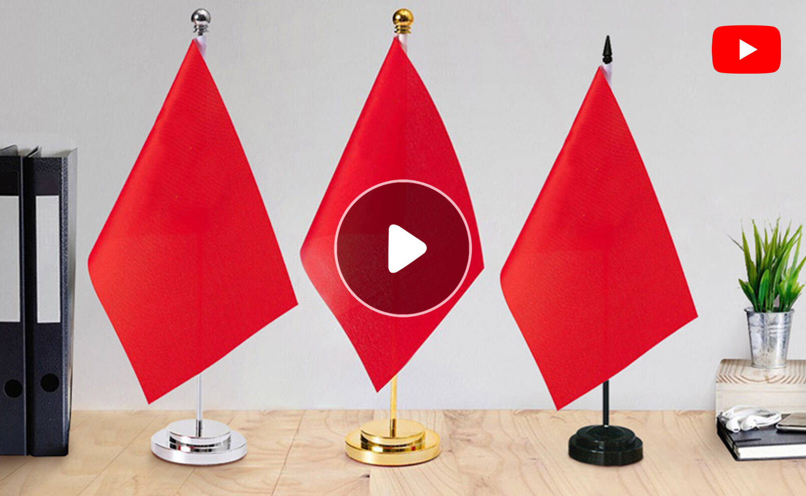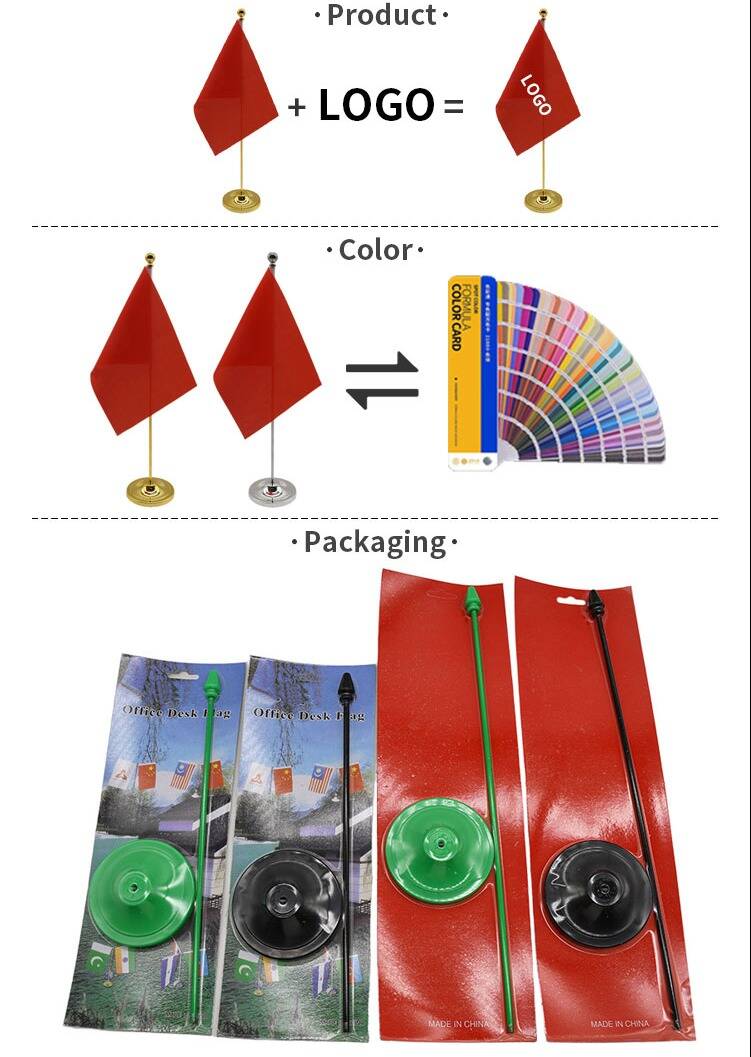 A1: A desk flag is a small flag. It is placed on desks, conference tables, negotiation tables, or exhibition booths. It consists of three parts: the flag, the flagpole, and the base.