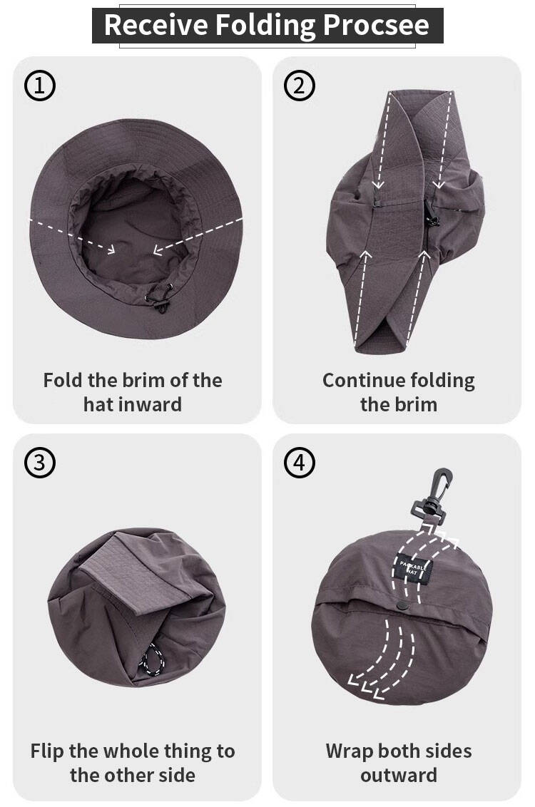 A: The hat is designed with a flexible brim and soft crown that allows it to be folded flat or rolled into a compact size (17 x 16 cm) without damaging its shape. It easily returns to its original form when unfolded.