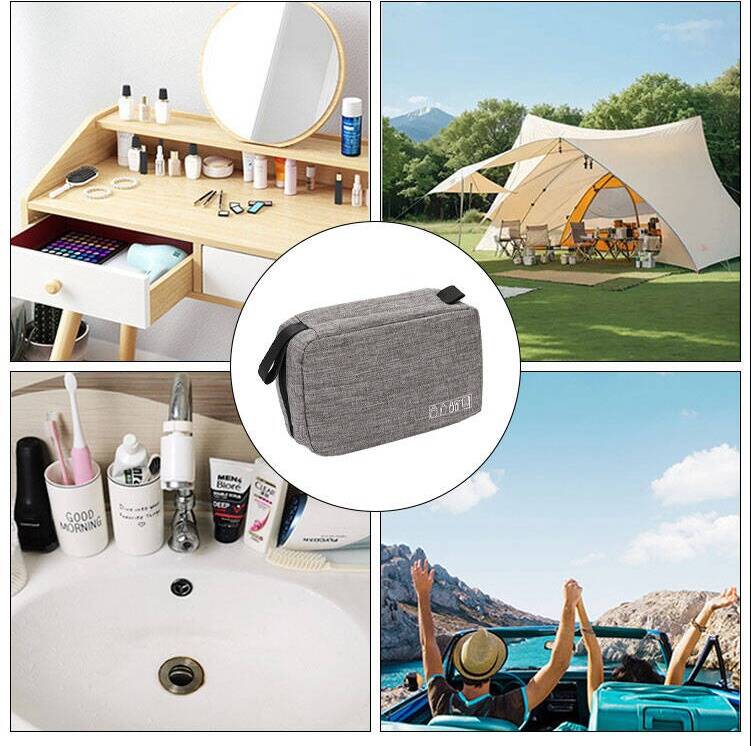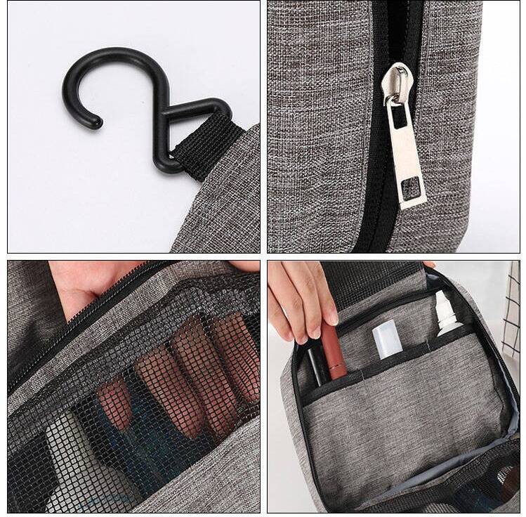 This portable toiletries bag is a hanging storage bag designed specifically for travel, gym sessions, swimming, and outdoor camping. When unfolded, the sturdy hook on the back can be hung on a bathroom towel rail or door handle — keeping your toothpaste, toothbrush, and face wash clearly visible; when folded and rolled up, it fits neatly into the corner of your suitcase without taking up much space.