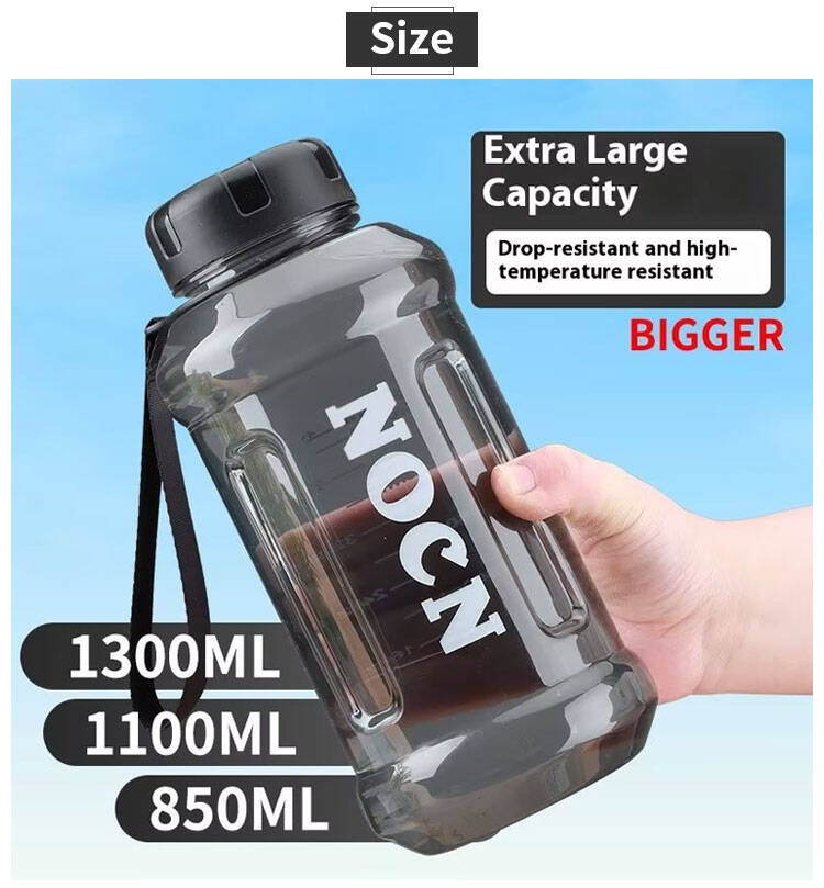 A: The bottle is available in 850 ml, 1100 ml, and 1300 ml options to suit different hydration needs.