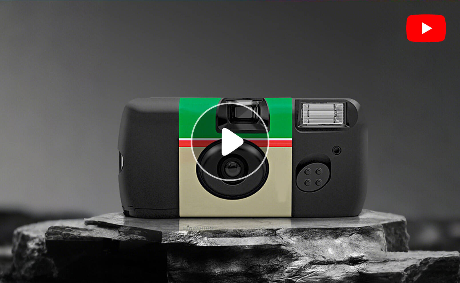 We are proud to present our disposable film camera with integrated flash in complete detail. Feel its refined craftsmanship and unique texture for yourself—from the lightweight, ergonomic casing to the intuitively placed flash button. Every element reflects thoughtful consideration and precision engineering.