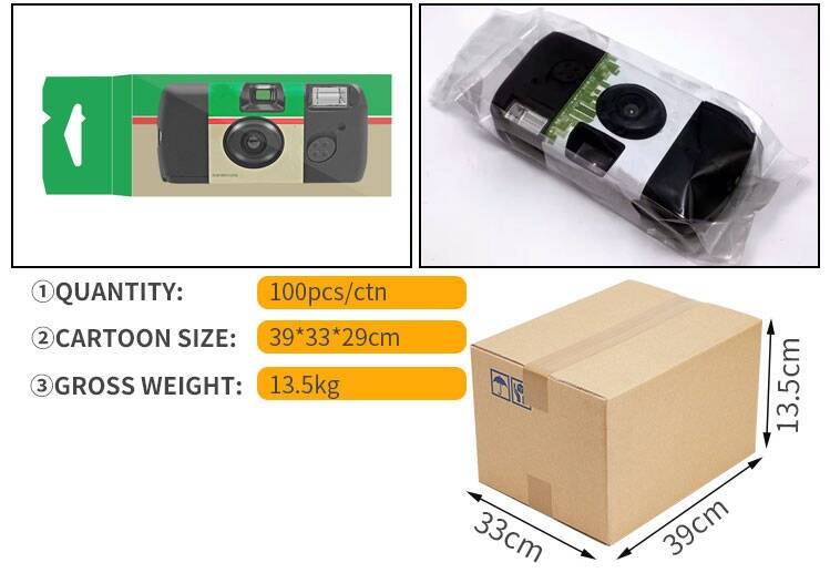 We understand that exquisite packaging is the first step toward a perfect experience. Below is the complete packaging information for this disposable film camera with built-in flash: