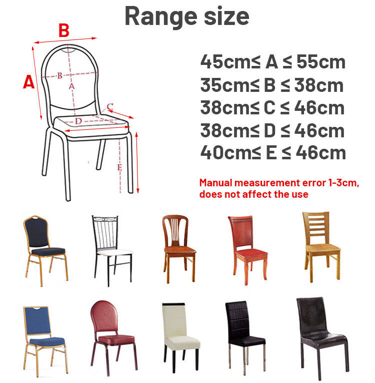 A: With dimensions of 45*45*95 cm, it fits most standard event chairs, banquet chairs, and dining chairs. We recommend measuring your chair before ordering.
