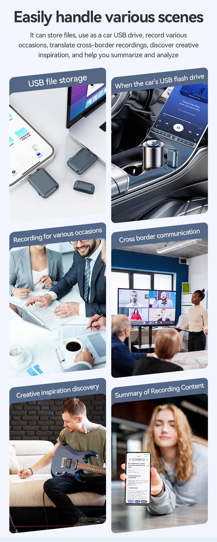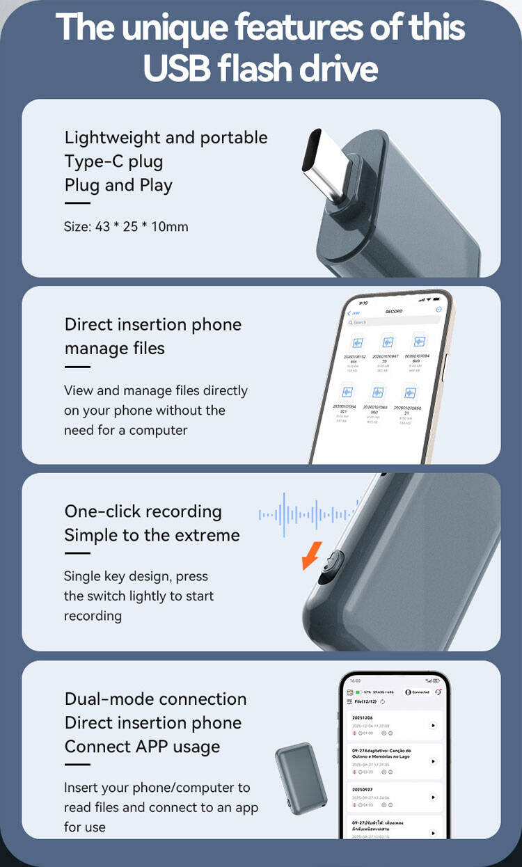 Made from durable ABS and powered by a lithium battery, this recorder offers up to 10 meters of recording distance and one‑click operation. Available in capacities from 4GB to 256GB, it is an essential tool for journalists, students, business professionals, and anyone who needs reliable audio capture and instant file access.