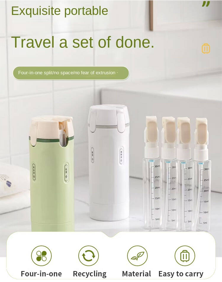 Crafted from durable ABS and PET materials, this compact kit includes four leak‑proof bottles in a s