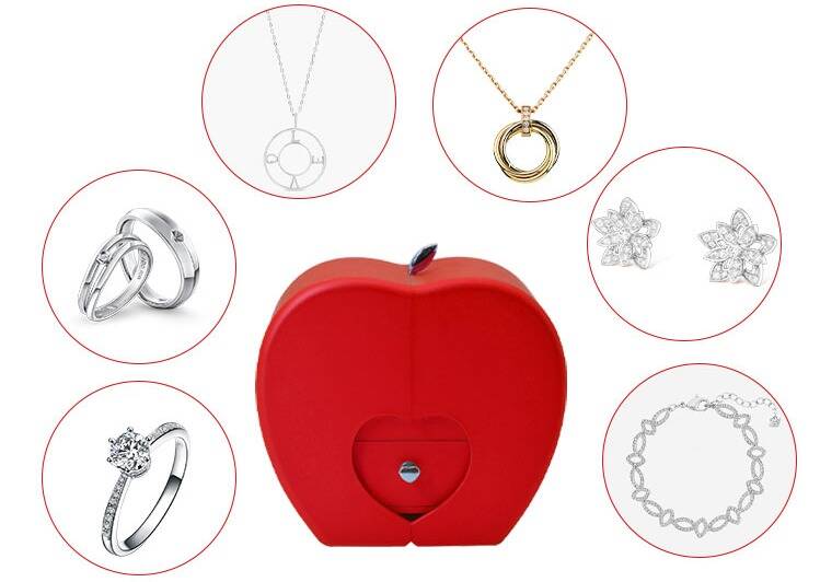 This Apple jewelry box is designed to hold precious sentiments, perfectly accommodating various jewelry pieces: