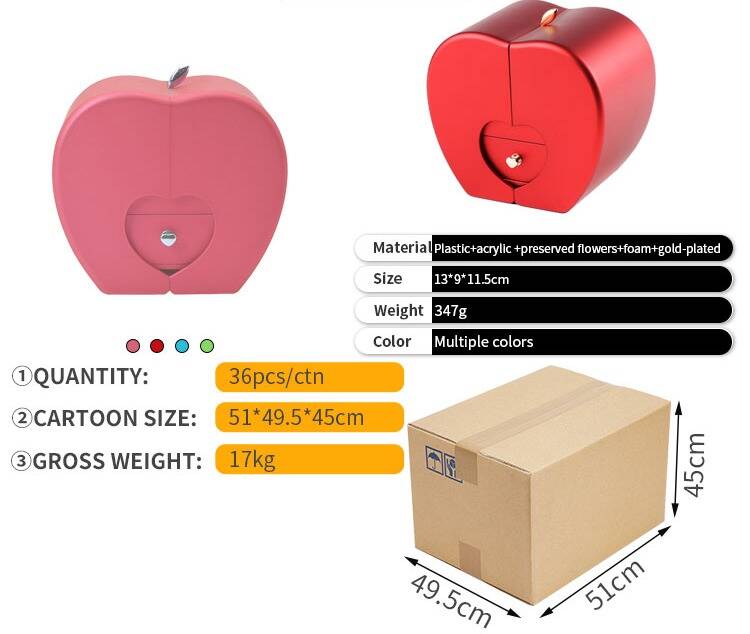 Apple Shaped Rose Necklace Jewelry Box for Valentine's Day Christmas Special Gift