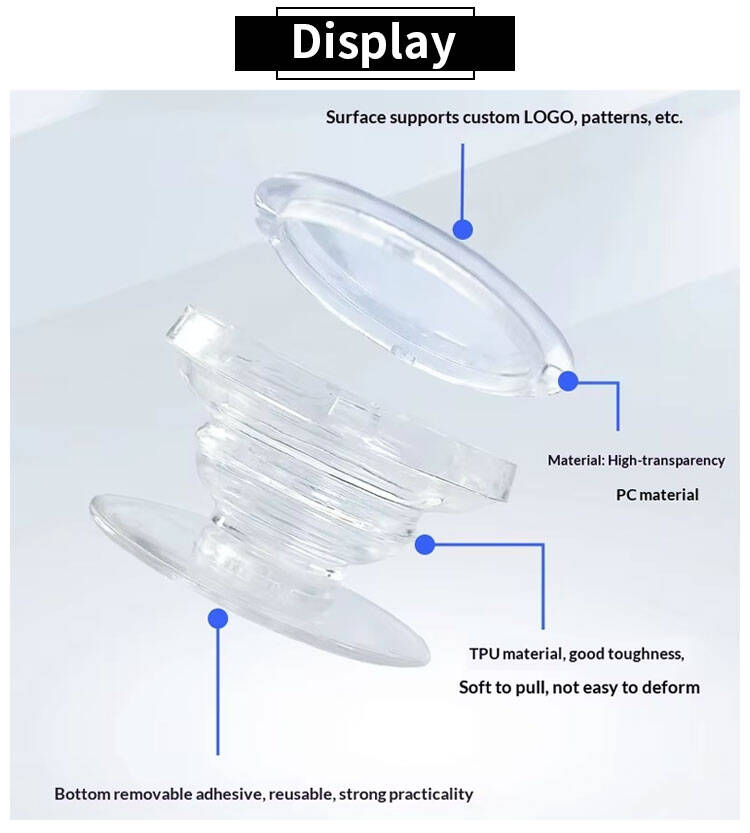 Made from durable PC, TPU, and a transparent removable adhesive, this ultra-lightweight accessory (weighing only 7g) provides a secure grip to prevent drops and extends into a sturdy kickstand for hands-free viewing. Its crystal-clear design blends seamlessly with any phone case, while UV color printing allows you to personalize it with vibrant logos or artwork. Perfect for daily use, travel, or as a clever promotional giveaway.