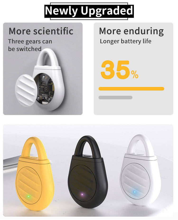Ideal for camping, hiking, fishing, or backyard relaxation, this repeller creates a protective zone without chemicals or DEET. Made from durable ABS, it features a built‑in 90mAh battery and a convenient carabiner clip, allowing you to hang it on a backpack, tent loop, or belt. Sleep peacefully and stay protected – naturally.
