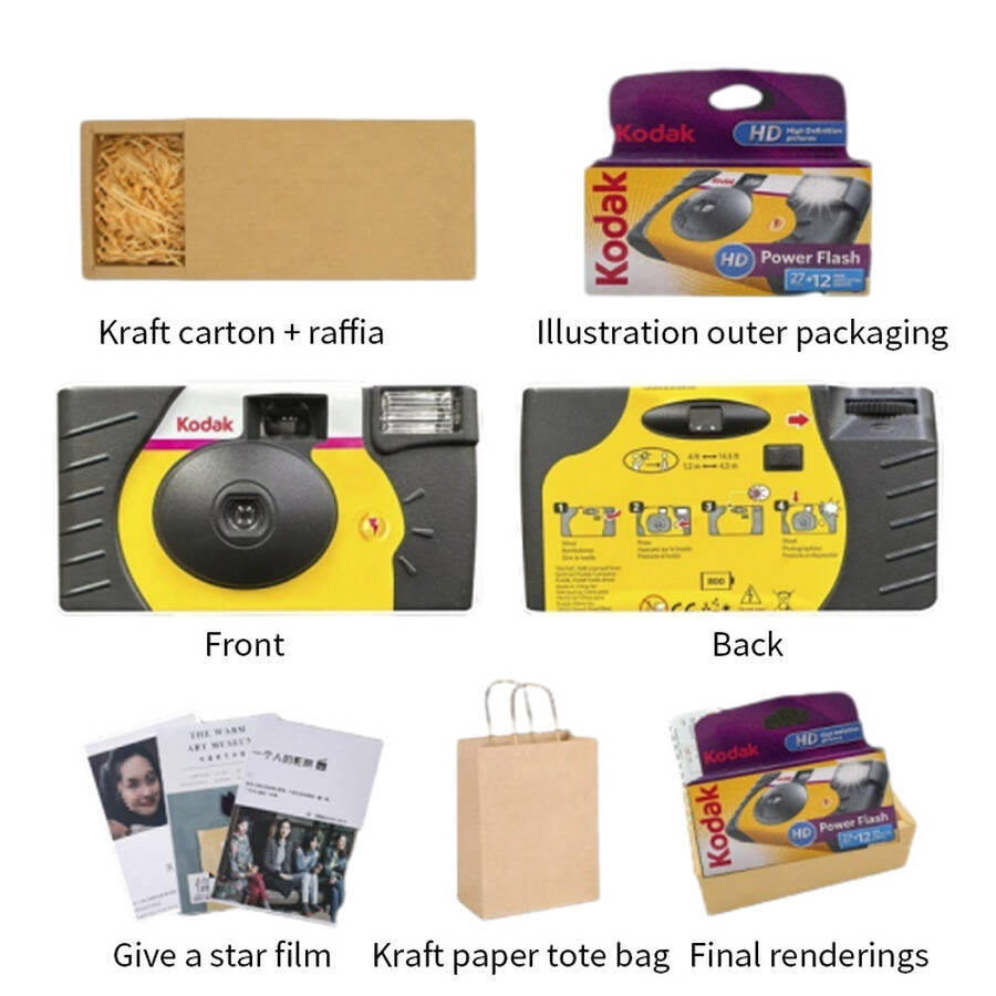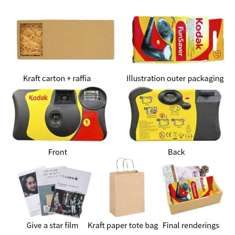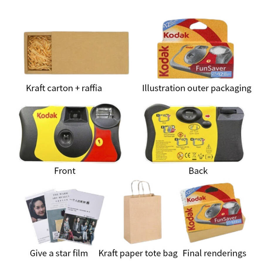 No batteries needed, no focusing required—this embodies the essence of Kodak's disposable film camera. Pre-loaded with iconic Kodak film, just press the shutter to achieve that signature aesthetic: warm color tones and distinctive grain texture.